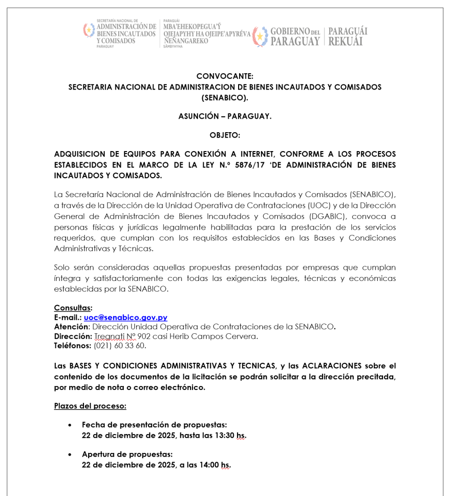 SENABICO alquila Establecimiento LUSIPAR 362 H