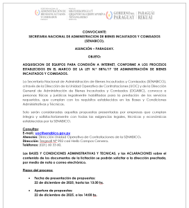 ADQUISICION DE EQUIPOS PARA CONEXIÓN A INTERNET, CONFORME A LOS PROCESOS ESTABLECIDOS EN EL MARCO DE LA LEY N.º 5876/17 ‘DE ADMINISTRACIÓN DE BIENES INCAUTADOS Y COMISADOS