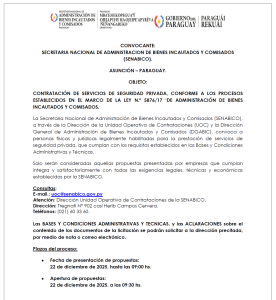 CONTRATACIÓN DE SERVICIOS DE SEGURIDAD PRIVADA, CONFORME A LOS PROCESOS ESTABLECIDOS EN EL MARCO DE LA LEY N.º 5876/17 ‘DE ADMINISTRACIÓN DE BIENES INCAUTADOS Y COMISADOS
